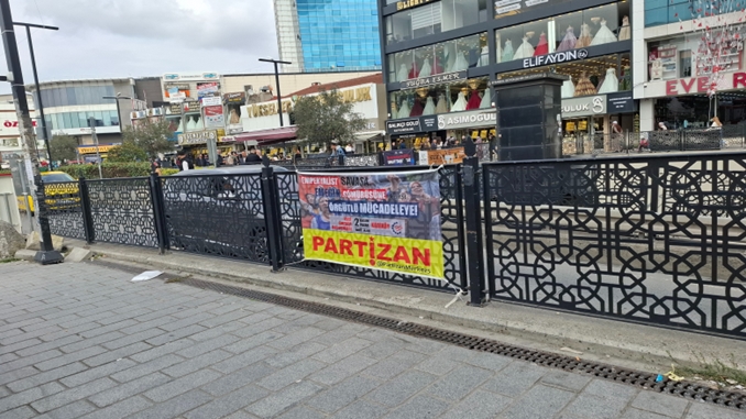 Bu kapsamda İstanbul’da üstünde Emperyalist Savaşa ve Emeğin Sömürüsüne karşı Örgütlü Mücadeleye” yazılı pankart asan Partizan (@PartizanMerkez5) X hesabından şunları paylaştı: