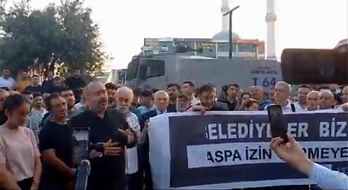 DEM Parti’nin 31 Mart’ta kazandığı Hakkari Belediyesi Eş Başkanı Mehmet Sıddık Akış gözaltına alınarak yerine Hakkari Valisi Ali Çelik’in kayyım olarak atanması İstanbul Esenyurt’ta protesto edildi.