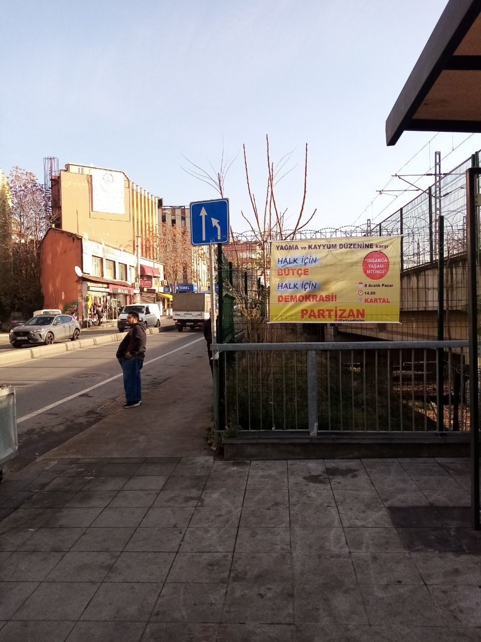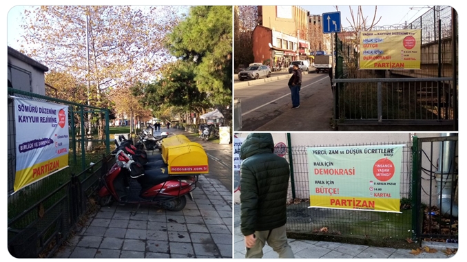 Partizan X Hesabı’ndan yaptığı paylaşımda; “Sömürü Düzenine Kayyum Rejimine Karşı Halk İçin Bütçe Halk İçin Demokrasi! 8 Aralık’ta Kartal’da, düşük ücretlere, vergi soygununa, kayyum uygulamalarına ve savaş politikalarına hayır demek için bir araya geliyoruz!”  ifadelerini kullanarak, “ Yağma Ve Kayyum Düzenine Karşı Birliğe ve Direnişe” ve “Vergi, Zam ve Düşük Ücretlere Karşı Halk İçin Bütçe Halk İçin Demokrasi” pankartları astığını duyurdu.