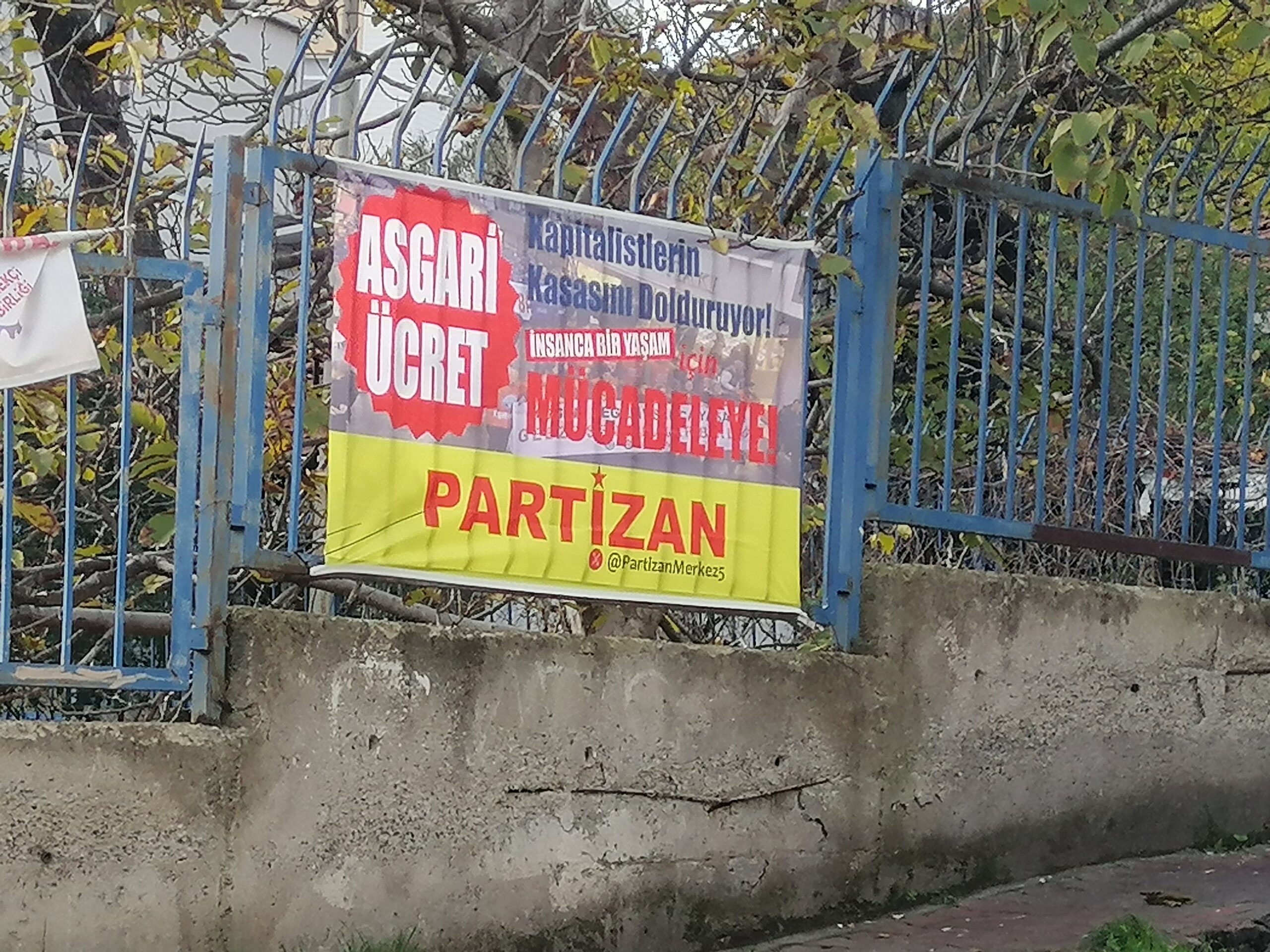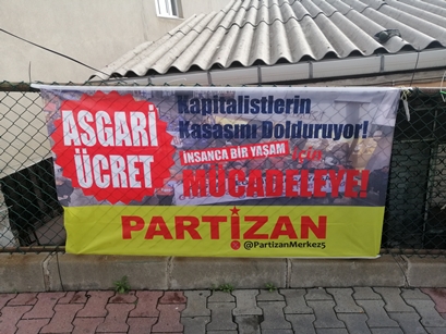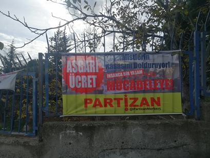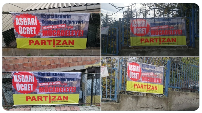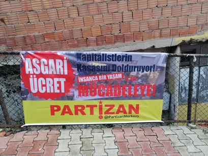 Partizan İstanbul Gülsuyu’nda asgari ücretle ilgili pankart çalışması gerçekleştirdiğini duyurdu. “Asgari Ücret, Kapitalistlerin Kasasını Dolduruyor, İnsanca Bir Yaşam İçin MÜCADELEYE, PARTİZAN” imzalı pankartlar, Gülsuyu’nda çeşitli bölgelere asıldı.