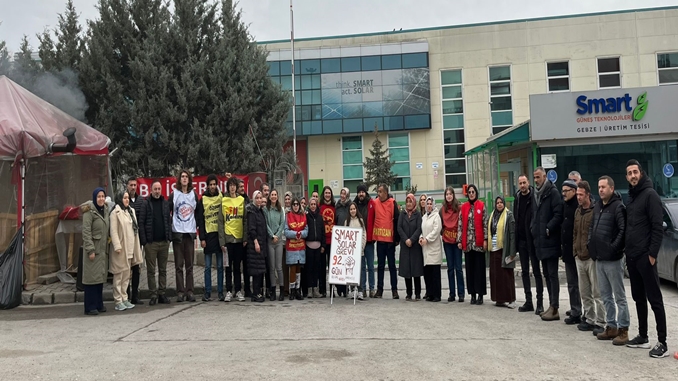 Partizan ise X Hesabı’ndan yaptığı paylaşımda; “92 gündür direnişlerini sürdüren Smart Solar işçileriyle dayanışmayı büyüttük. İşçi-Emekçi Birliği olarak sıfır zam dayatmasına, grev kırıcılığına, işten atmalara karşı greve çıkan işçilerle birlikteydik. Yaşasın sınıf dayanışması” ifadelerini kullandı.