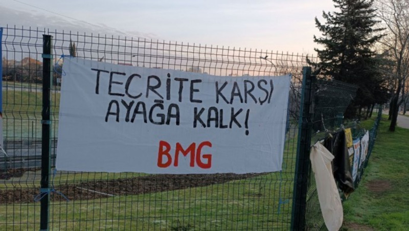 Partizan X Hesabından yapılan paylaşımda “İmralı uygulanan tecrit rejimine, tüm hapishanelerde siyasi tutsakları düşüncelerinden arındırmaya çalışan tecrit politikalarına karşı Ayağa Kalk!” ifadeleri kullanılarak, “Tecride karşı Ayağa Kalk” BMG imzalı pankart asıldığı duyuruldu.