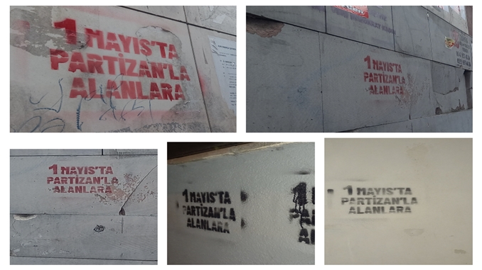 Partizan 1 Mayıs çalışmalarına devam ediyor. İstanbul Partizan, yaygın olarak yaptığı “1 Mayıs’ta Partizan’la Alanlara” içerikli stencil çalışmasında işçi ve emekçileri 1 Mayıs alanlarına çağırdı.