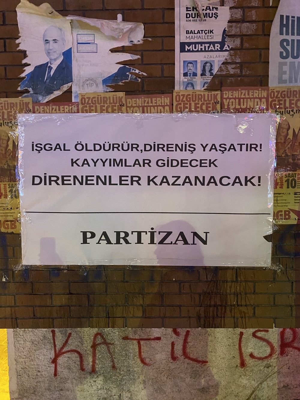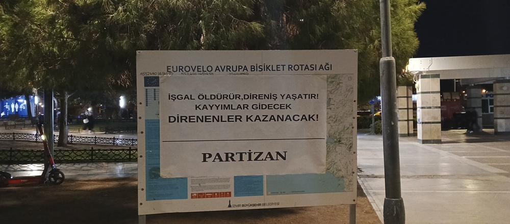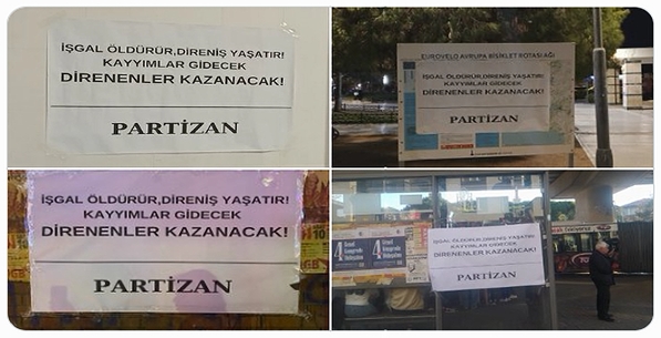 Partizan; İzmir’de “İşgal Öldürür, Direniş Yaşatır! Kayyımlar Gidecek Direnenler Kazanacak! Partizan” imzalı ozalitleri İzmir’in işlek cadde ve sokaklarına asıldı.