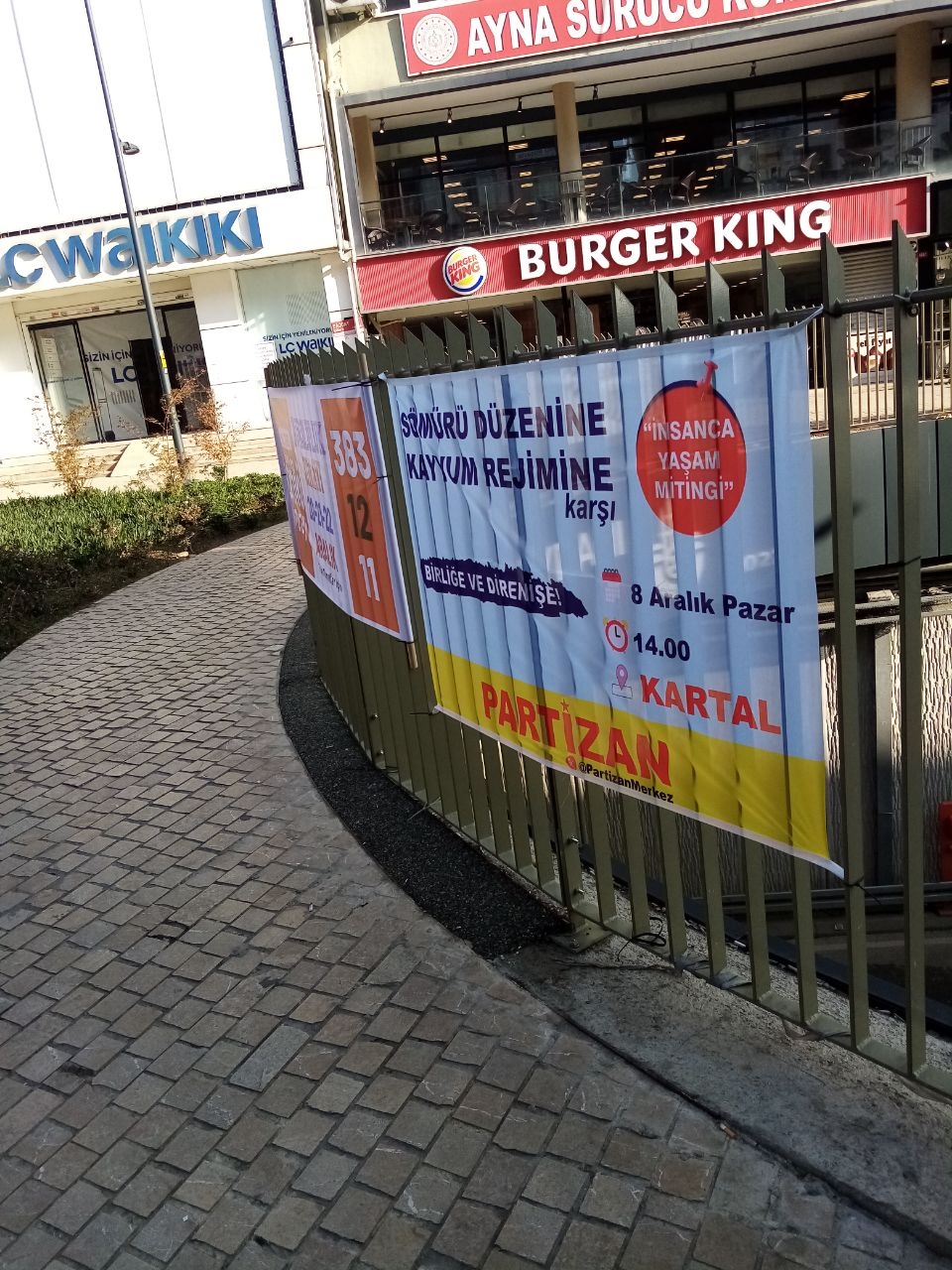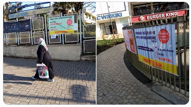Partizan, İstanbul Maltepe’de çeşitli bölgelerde pankartlar asarak 8 Aralık’ta Kartal’da düzenlenecek “İnsanca Yaşam” mitingine katılım çağrısını yineledi.