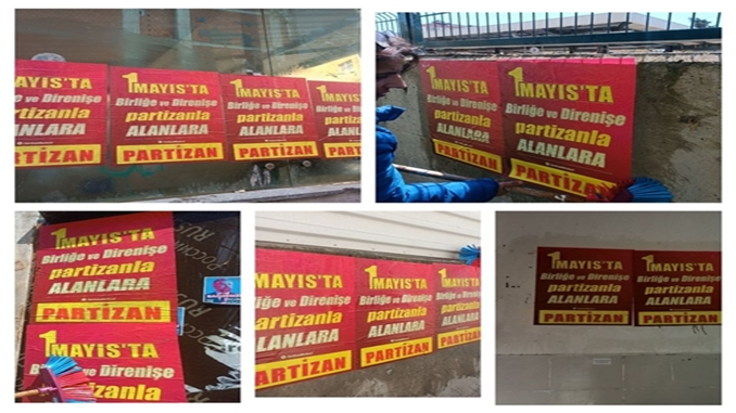 Partizan 1 Mayıs çalışmaları kapsamında Maltepe’de birçok yere “1 Mayıs’ta Birliğe ve Direnişe Partizanla alanlara” yazılı afiş ve “1 Mayıs Partizanla Alanlara” yazılı stencil çalışması yaptı.