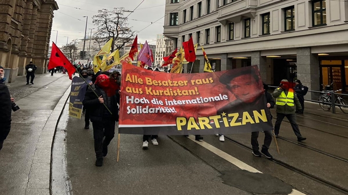 Mitingle başlayan protesto, şehir merkezine doğru yapılan yürüyüşle devam etti. Yürüyüş boyunca “Savaşınıza karşı savaş”, “Yaşasın enternasyonalist dayanışma”, “Jin jiyan azadî”, “Faşizme karşı omuz omuza”, “Filistin’e, Gazze’ye özgürlük” sloganları coşkuyla ve aralıksız atıldı.