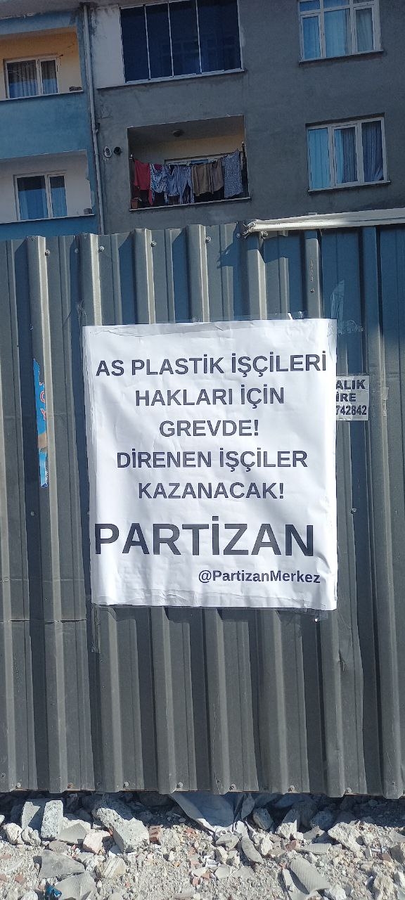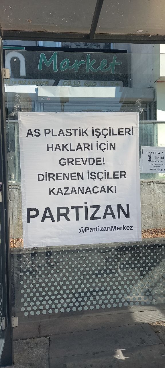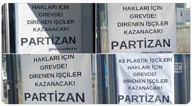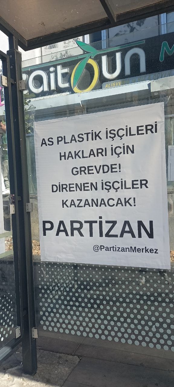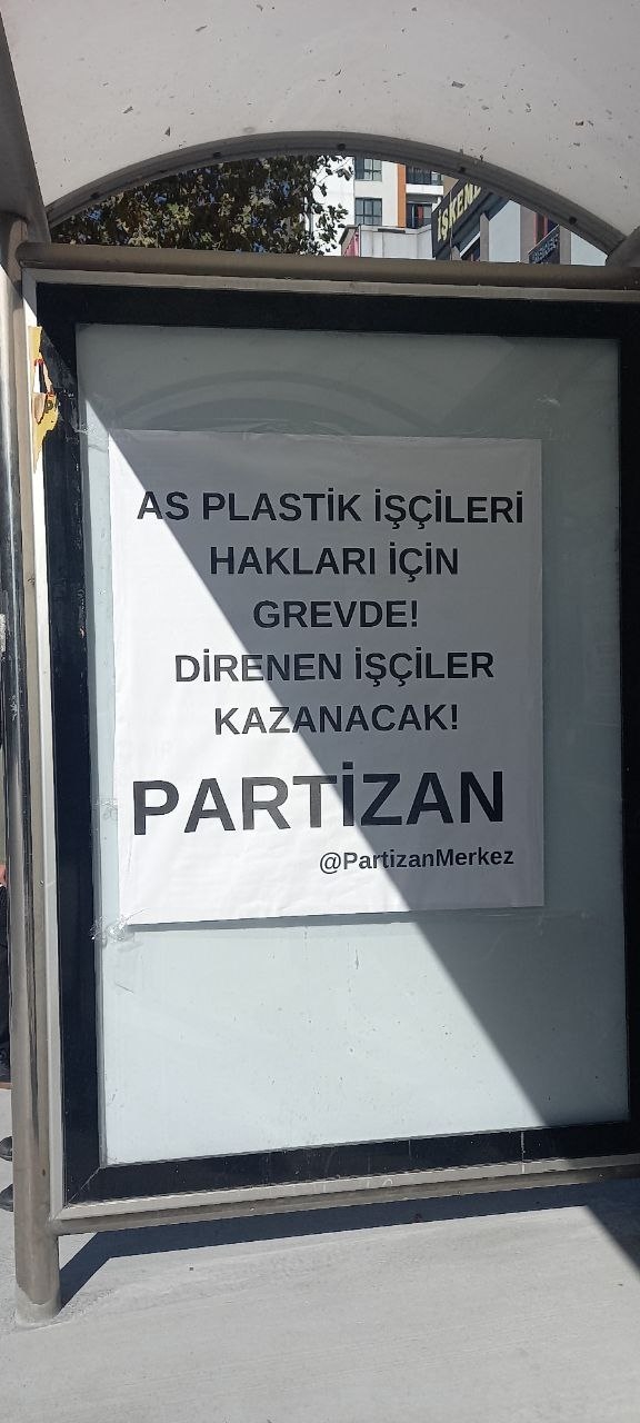 Partizan ise İstanbul’da çeşitli bölgelerde “As Plastik İşçileri Hakları İçin Grevde! Direnen İşçiler Kazanacak” yazılı ozalitleri birçok noktaya asarak işçileri seslerini duyurdu.