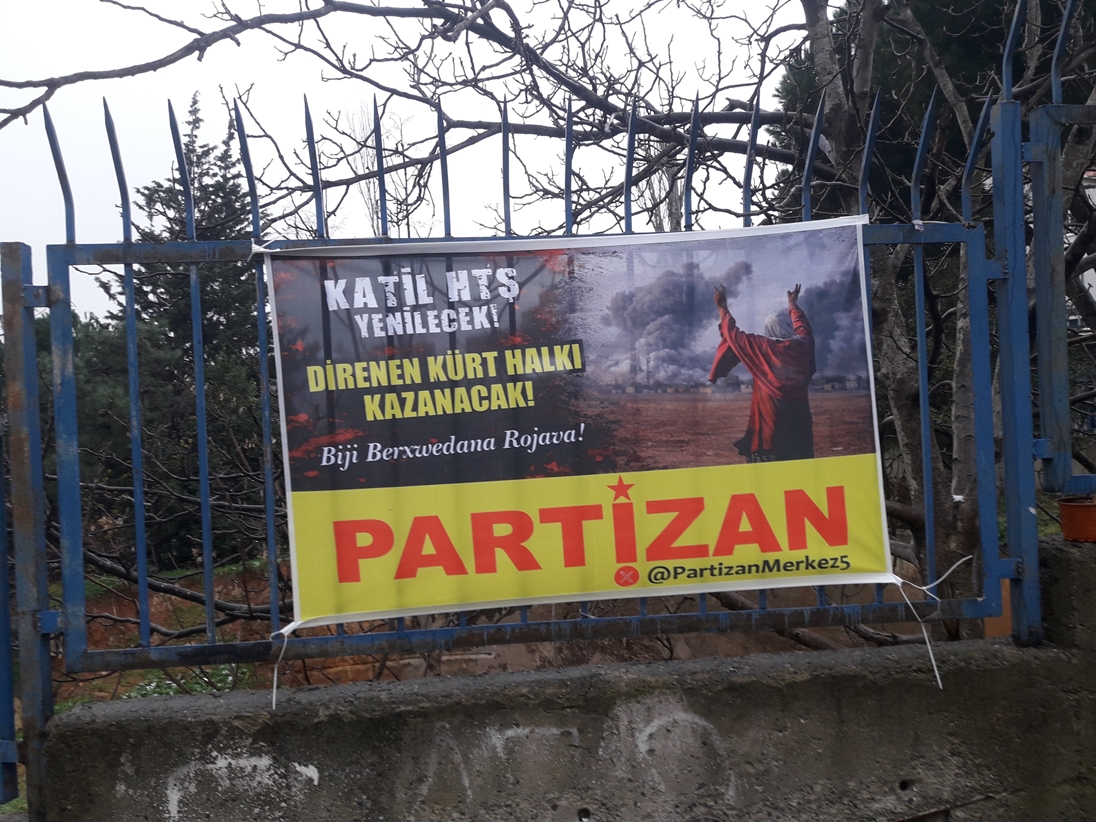 Partizan, Suriye’de önce Alevilere, ardından Dürzilere ve son olarak Kürtlere yönelik gerçekleştirilen katliam saldırılarına karşı Gülsuyu’nda çeşitli noktalara, “Katil HTŞ Yenilecek, Direnen Kürt Halkı Kazanacak! Bijî berxwedana Rojava!” yazılı pankartlar astığını duyurdu.