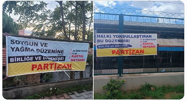 Partizan X Hesabı’nsan yaptığı paylaşımda , Maltepe ve Gülsuyu’nda astığı pankartlarla; “Haklarımıza ve geleceğimize sahip çıkmaya çağırıyoruz. Mücadeleyi birlikte büyütelim diyoruz. İşçi Emekçi Mitingi’nde buluşuyoruz.” sözleriyle çağrı yaptı.