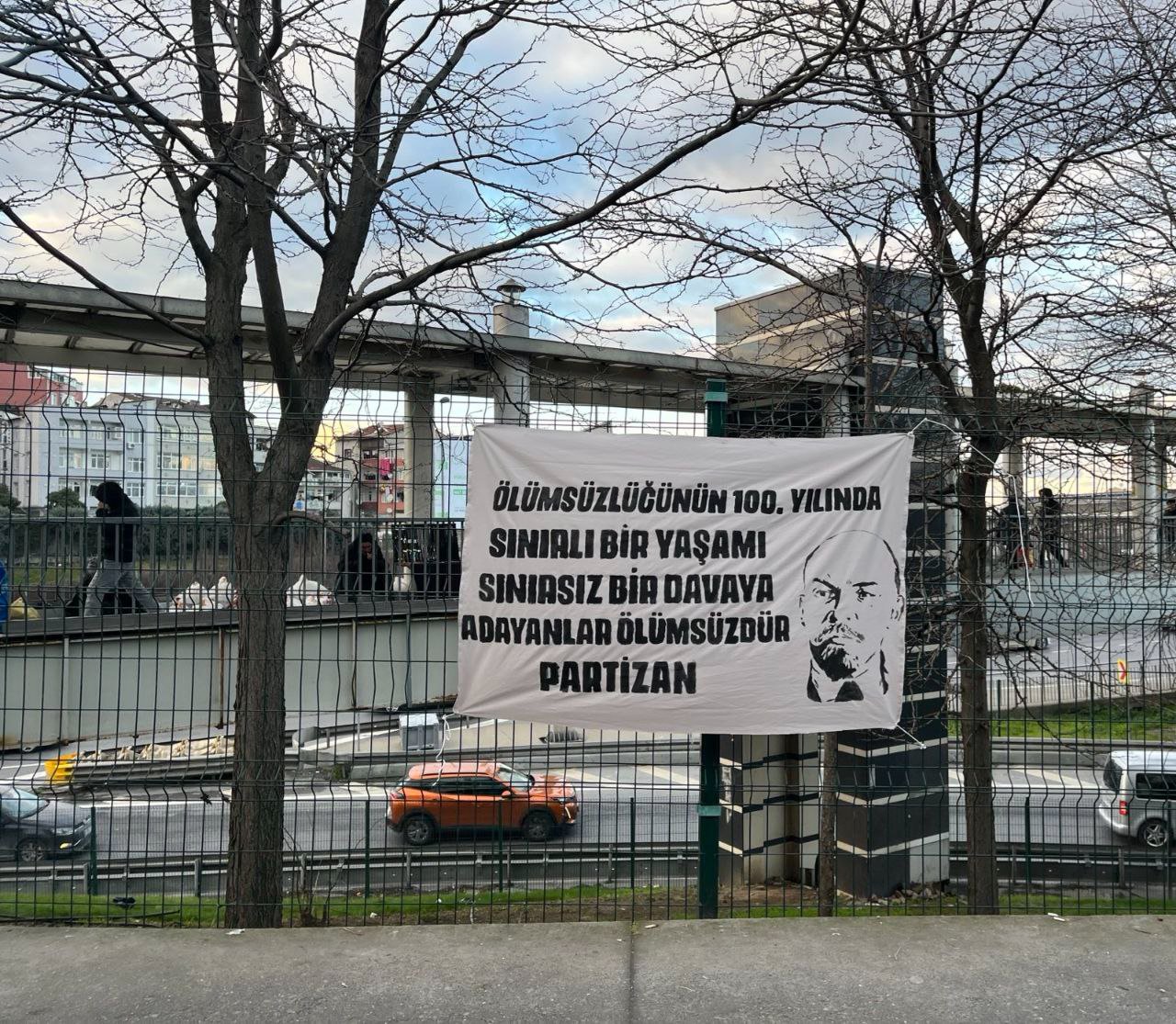 Partizan X Hesabından yaptığı paylaşımda “Dünya proletaryasının ve ezilen ulusların önderi Lenin yoldaşın teorisi ölümsüzlüğünün yüzüncü yılında proletarya ve ezilen mazlum halklara yol göstermeye devam ediyor” ifadelerini kullanarak; “Ölümsüzlüğünün 100. yılında Birliğe Mücadeleye Zafere! PARTİZAN” imzalı pankart astığını duyurdu.