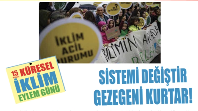Partizan, 15 Kasım Küresel İklim Eylem Günü dolayısıyla yaptığı yazılı açıklamada, kapitalist sistemin doğayı, yaşamı ve toplumsal sağlığı geri dönüşü olmayan bir yıkıma sürüklediğini vurgulayarak, “Sistemi değiştir, gezegeni kurtar” çağrısı yaptı.