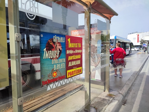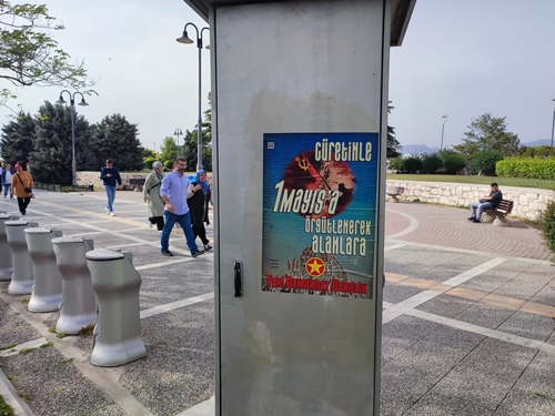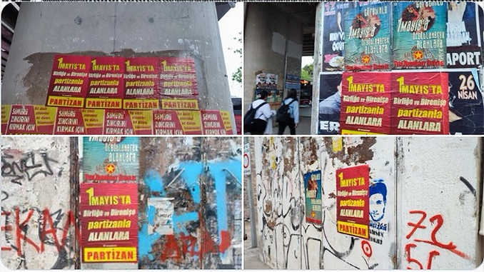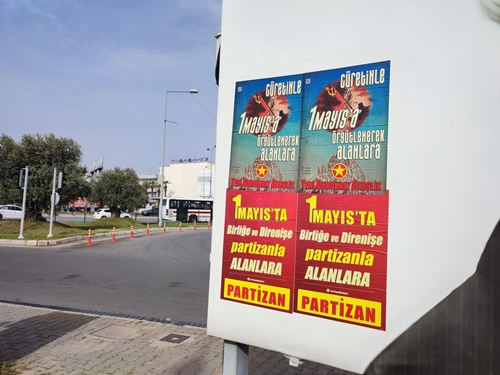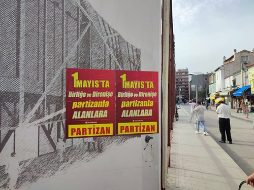İzmir Partizan X Hesabı’ndan yaptığı paylaşımda; “Örgütlü Gücümüzle; Birliğe, Direnişe 1 Mayıs’ta Partizan’la alanlara” ifadelerini kullanarak, Bornova’da otobüs duraklarına ve duvarlara; Partizan imzalı “1 Mayıs’ta Birliğe ve Direnişe Partizanla Alanlara” ile YDG imzalı “Cüretinle 1 Mayıs’a Örgütlenerek Alanlara” afişleri yaptığını duyurdu.
