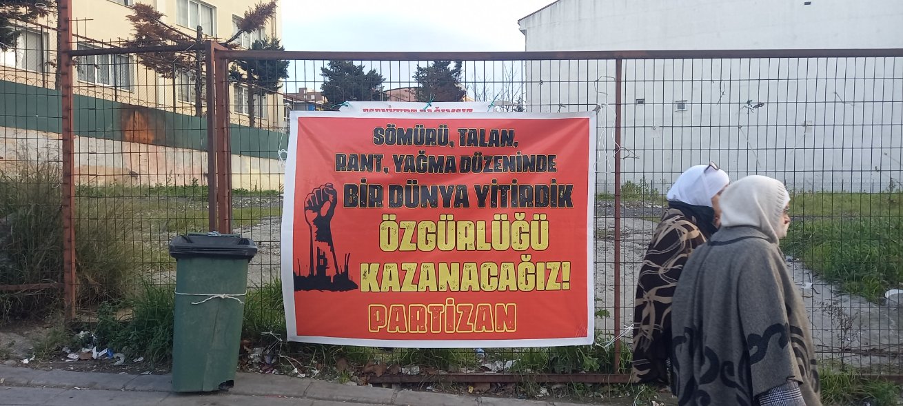 Partizan X hesabından yapılan paylaşımda “Yağma, talan ve rant düzeni yıkılacak! Özgür, eşit ve demokratik bir dünyayı ellerimizle birlikte kuracağız! 6 Şubat’ta hayatlarımızı, geleceğimizi bizden çalanlardan hesap soracağız! PARTİZAN” imzalı pankart asıldığı ifade edildi.
