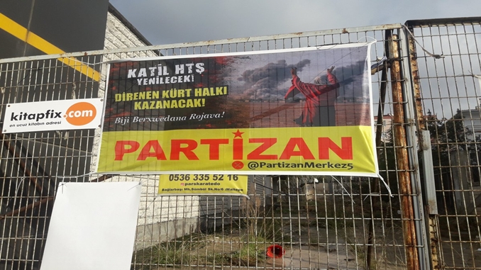 Partizan İstanbul’da üzerinde “Katil HTŞ Yenilecek Direnen Kürt halkı kazanacak! Bijî berxwedana Rojava!” yazılı pankartlar astığını duyurdu.
