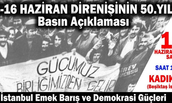 “50. yılında 15-16 Haziran Ruhuyla Direnişe!” başlıklı açıklamada Kadıköy’de düzenlenecek eyleme çağrı yapıldı.