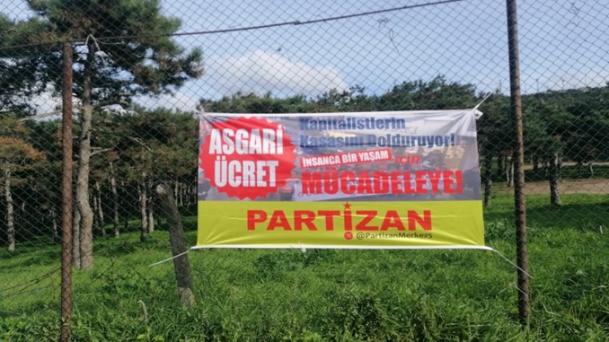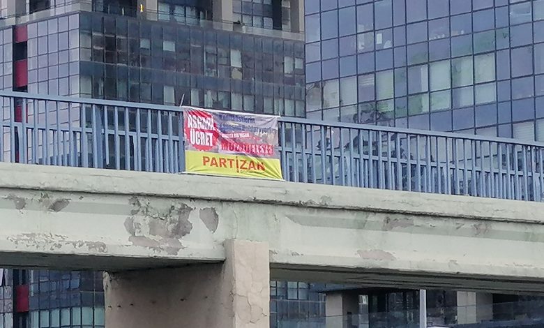 Partizan, İstanbul’un Kartal ilçesindeki E-5 (D-100) hattında gerçekleştirdiği pankart çalışmasıyla asgari ücrete karşı mücadele çağrısı yaptı.