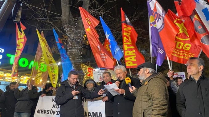 Ankara Emek Demokrasi Güçlerinin Kobanê’deki ablukaya ve Mersin’deki katliama karşı açıklamalarına katıldı. “Kobanê’deki kuşatmaya, Mersin’deki katliama ses çıkar” pankartının açıldığı eylemin metnini Fatin Kanat okudu.