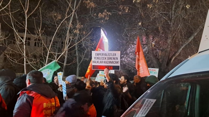 Suriye’de HTŞ güçlerinin Rojava’ya yönelik saldırılarına karşı Ankara Emek ve Demokrasi Güçleri “Suriye’de, İran’da, Türkiye’de faşizm ve barbarlık yenilecek, direnen halklar kazanacak” diyerek Kolej Meydanı’nda bir araya geldi.