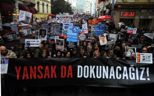 Cumhuriyet gazetesi yazarı Aydın Engin’in ölümle tehdit edildiği, Cumhuriyet kantin işletmecisi Şenol Buran’ın “Erdoğan’a çay vermem…” dediği için tutuklandığı günlerden geçiyoruz. Birgün gazetesi yazarı Seray Şahiner’in başına gelenler ise ifade özgürlüğünün durumunu özetler nitelikte. Bir yazısında Bilal Erdoğan’a “üstün zekalı” ifadesi kullanan Şahiner’in Bursa’da kaldığı otelin odası erkek polislerce basılarak didik didik arandı. Senaryo ekibinde yer aldığı diziden, ATV’deki işinden kovuldu. Baskı, gözaltı ve tutuklamaların rutine dönüştüğü sosyalist ve yurtsever basının yaşadıkları ise ayrı bir tez konusu. Onlarca çalışanı, yazı işleri müdürleri tutuklanan DİHA, yazı işleri müdürü Aslı Ceren Aslan’a 2 yıl 6 ay ceza verilen Özgür Gelecek; kapatılan özgür radyo, İMC, Hayat TV vd, vd… listeyi uzatmak mümkün ve de çok kolay!