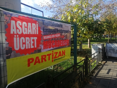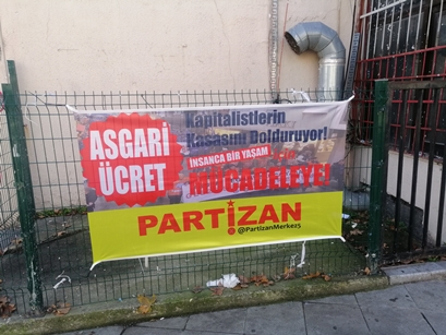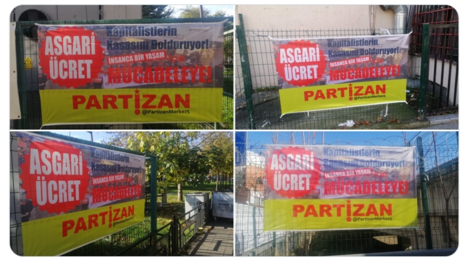 Partizan’da, İsranbul Kartal’da asgari ücretle ilgili pankart çalışması gerçekleştirdiğini duyurdu. “Asgari Ücret, Kapitalistlerin Kasasını Dolduruyor, İnsanca Bir Yaşam İçin MÜCADELEYE, PARTİZAN” imzalı pankartlar, Kartal’da çeşitli bölgelere asıldı.