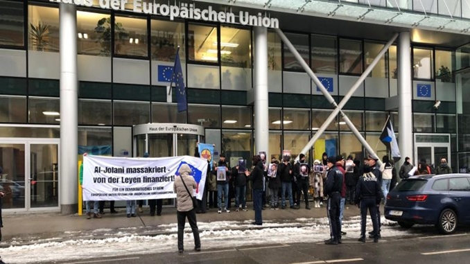 Rojava’ya yönelik HTŞ ve Türk devletine bağlı çetelerin saldırıları, Viyana’da Avrupa Birliği binası önünde düzenlenen eylemle protesto edildi.